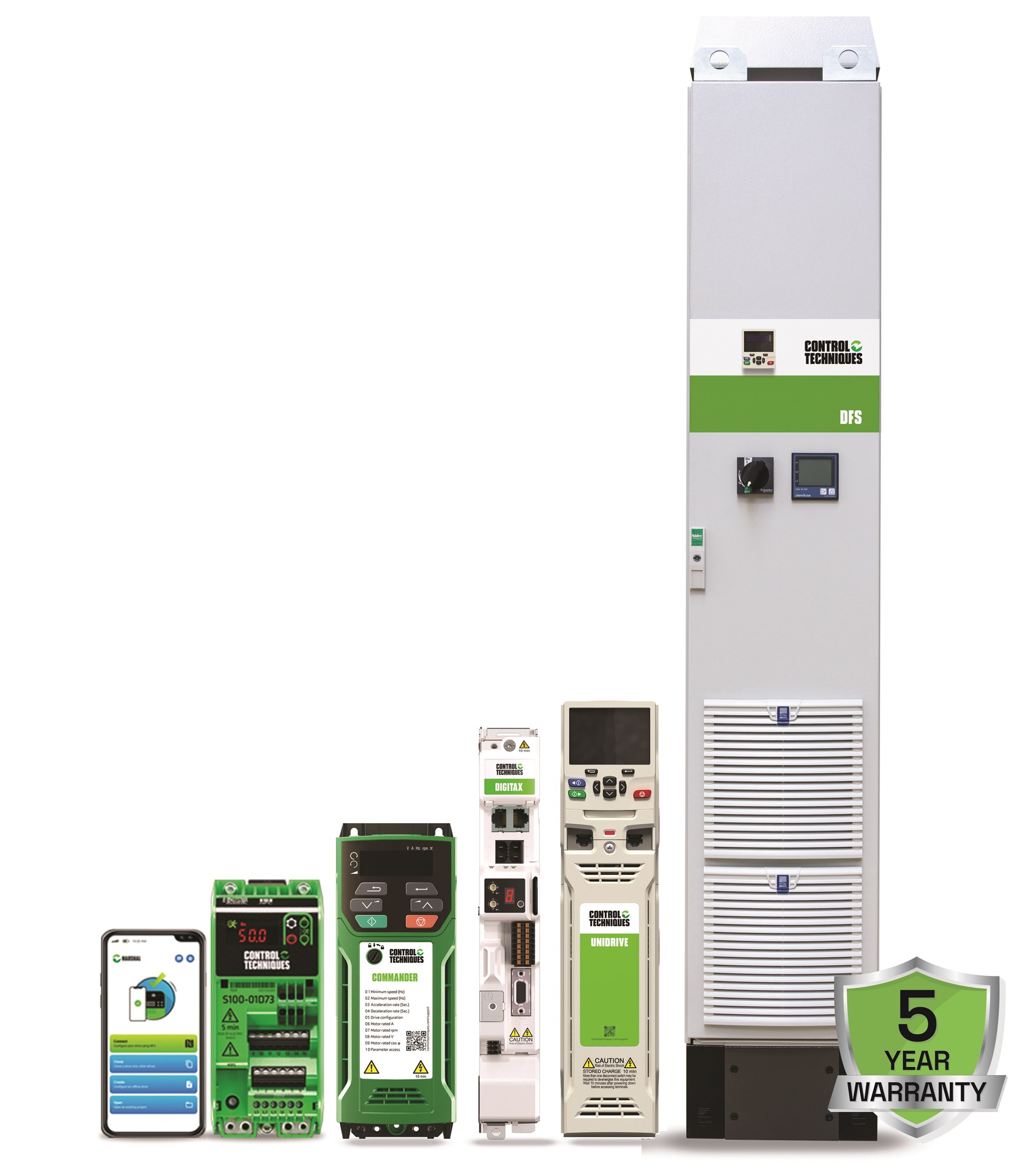 • Nidec Drives voor Control Techniques frequentieregelaars en servoregelaars