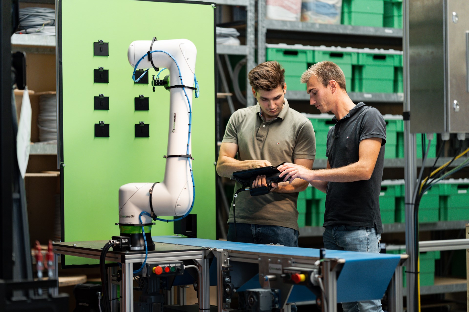 Innomatic ontwerpt en realiseert turnkey automatisatiesystemen waarbij robotics en process automation centraal staan. We automatiseren repetitieve, foutgevoelige of ergonomisch zware taken en integreren robots naadloos in bestaande of nieuwe productielijnen.