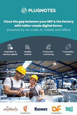 Met Plugnotes digitaliseer je eenvoudig al je werkvloerprocessen in het atelier of de fabriek via op maat gemaakte digitale formulieren. Geen papieren fiches, manuele notities of dubbele invoer meer.